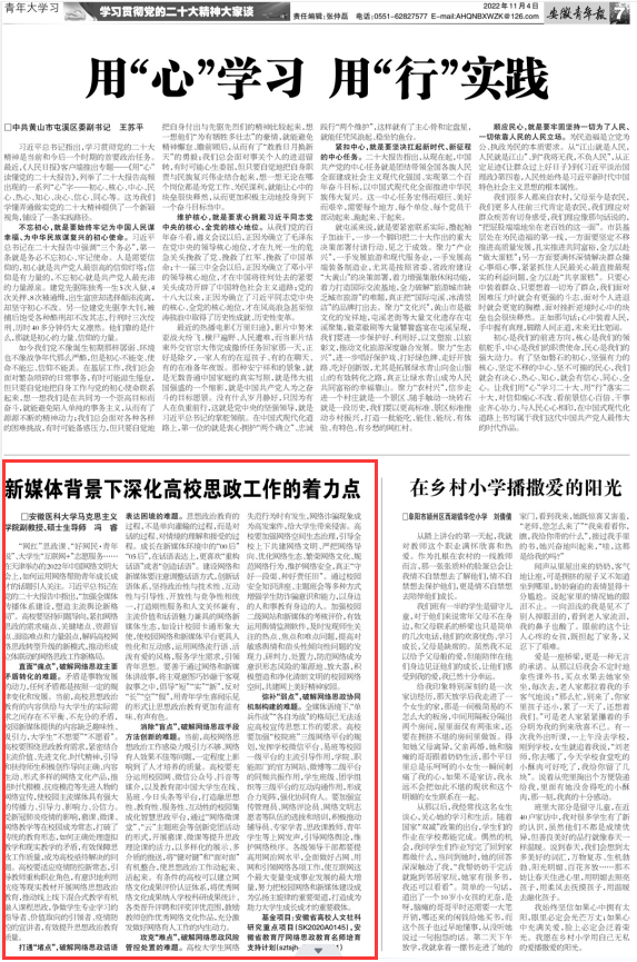 安徽青年报:新媒体背景下深化高校思政工作的着力点