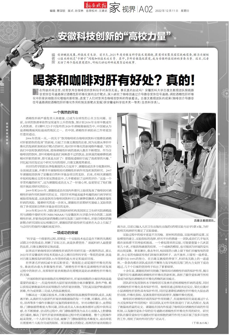 “我们现在能够完成的一些工作都是站在很多老一辈科研工作者的肩膀上,取得的一点成绩离不开老一辈科研工作者的言传身教和倾囊相授,离不开学校科研体制机制的推动和科研平台的有力支撑,离不开科研团队的协同攻关和紧密合作。”吕雄文教授表示:“虽然我们证明了咖啡有保肝作用,但预防酒精性肝病的最好办法依然是少喝或者不喝酒,而不是多喝咖啡。”