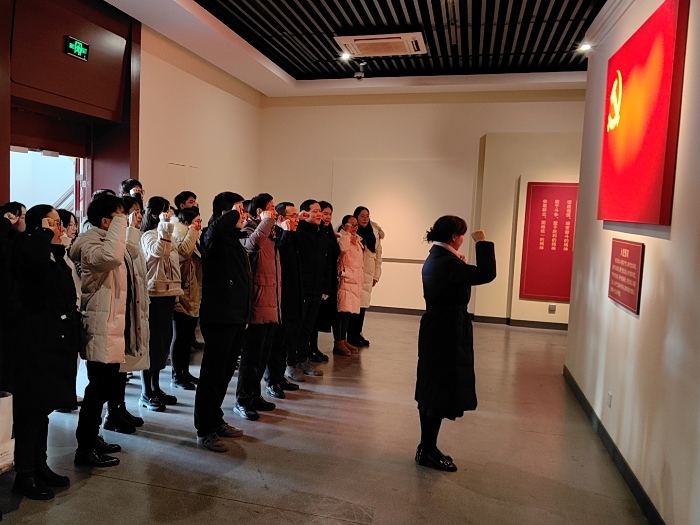 集体参观完毕后,全体师生党员面向党旗重温入党誓词,坚定理想信念,砥砺前进初心。