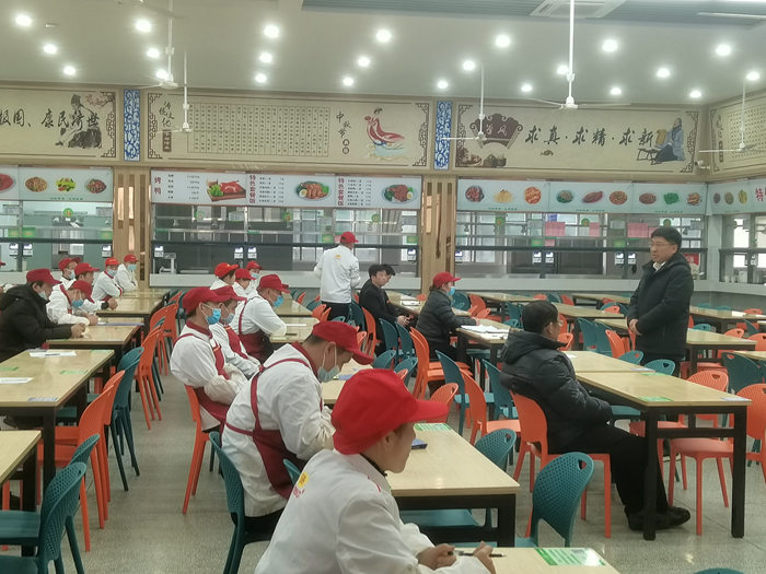 2月23日下午,我校开展2024年春季学期校园食品安全知识培训会,校本部、翡翠路校区和东校区各设分会场,相关部门负责人、管理人员和4家在校服务餐饮公司员工等200余人参加培训。