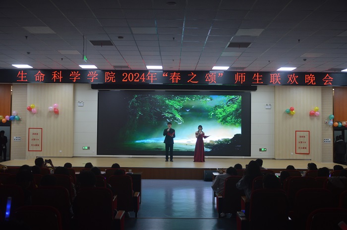 4月25日晚,生命科学学院在东校区大学生活动中心举办2024年“春之颂”师生联欢晚会。该院领导、班主任和师生代表300余人观看了演出。