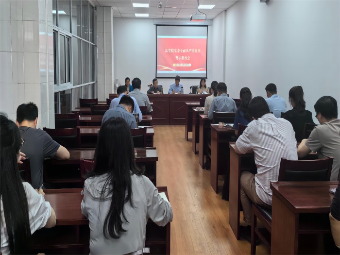 5月15日下午,法学院召开全面从严治党暨警示教育会议,集中学习习近平总书记关于党的自我革命的重要思想,传达学习学校全面从严治党暨警示教育工作会议精神,解读学校2024年全面从严治党工作要点。该院党委书记夏会林主持会议并作总结讲话,学院全体班子成员参加会议。