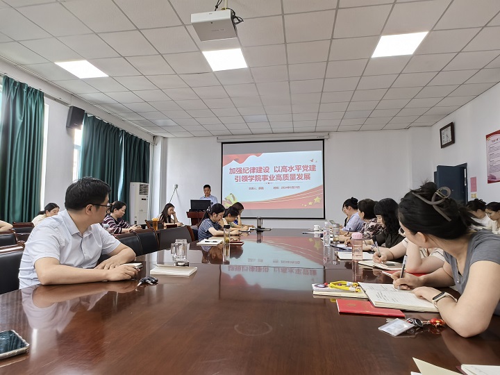 6月25日下午,护理学院举行党委理论学习中心组学习(扩大)会暨党纪学习教育专题党课,集中学习了《习近平关于全面加强党的纪律建设论述摘编》部分内容。该院党委书记薛磊以《加强纪律建设 以高水平党建引领学院事业高质量发展》为题讲授专题党课。