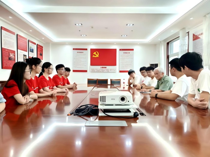 聆听老兵故事,学习意志品质。在滁州市光荣院,实践团以防诈宣传开篇,向老兵们介绍了针对老人和退伍军人的常见诈骗手段,针对性普及防诈知识。在“我与老兵面对面”交流中,95岁的退伍老兵严明友以“三大纪律”“八项注意”为引,分享了他在部队的生活和红色故事,给实践团上了一堂精彩的思政课。严老展现的信仰坚定、不畏艰辛、不惧牺牲的意志品质,让队员们深受感动。“严老说,批评与表扬是两种方式、一个目的,让我茅塞顿开。面对学习科研中的荣誉和失败,我们也应该用同样的思维去思考。”实践团成员程冠驭深有感触地说道。