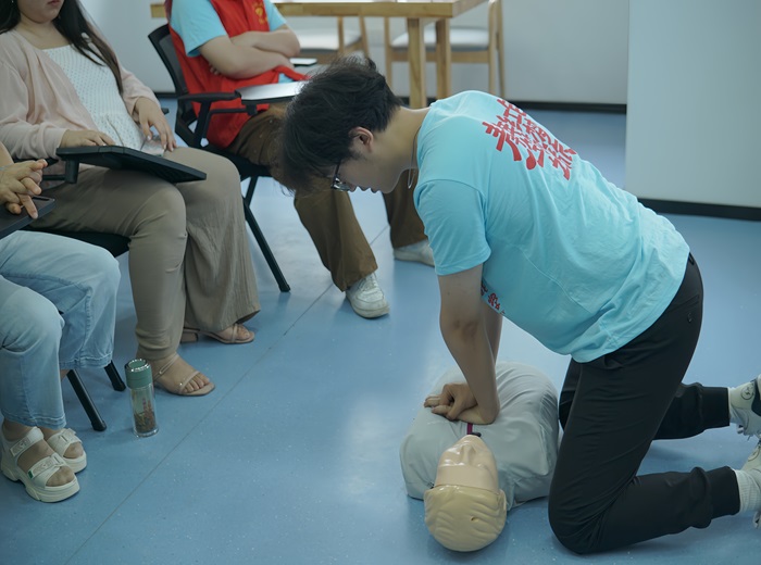“智护生命 乐享健康。“在生命的赛道上,每一秒都至关重要,而正确的心肺复苏按压术便是那把能够撬动生死之门的金钥匙。”实践团成员高诚援正向居民强调心肺复苏按压术在急救过程中的关键作用。为了能够让居民们更好掌握CPR操作技能,实践团带领村民们轮流模拟练习,亲身体验整个急救过程。“通过这次活动,村民们对心肺复苏有了更为直观的认识,也更有信心在紧急情况下施以援手。”实践队队长刘琪分享道。在东湖社区工作人员的带领下,实践团还上门开展健康咨询和筛查工作,细致入微地询问老人们的生活起居和健康状况,一句句贴心的“注意身体”传递着关怀与温暖。
