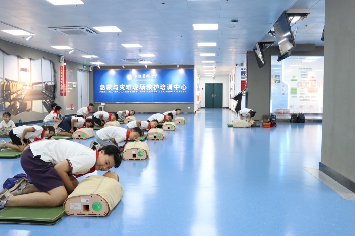 在1100平方米的现代化人体科学馆内,同学们在基地教师的带领下参观了14个展区的人体标本,结合细致的科普讲解,了解了自己的身体结构与器官功能,感受现代医疗技术的飞速发展,也认识到保持良好生活方式对疾病预防的重要性。在省红十字应急救护培训安医大工作站,工作人员通过案例分析、理论讲解和模拟演示相结合的方式,向同学们讲解了心肺复苏、AED的使用以及海姆立克急救法的相关急救知识。现场气氛热烈,同学们纷纷表示受益匪浅。