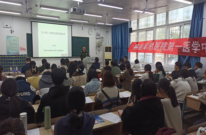 作为我校1993届医疗系校友,周飞虎对母校的热情接待表示感谢,并对学校近年来在人才培养、学科建设、科技创新、社会服务等方面取得的成绩给予高度评价。他介绍了中国人民解放军第一医学中心重症医学科的基本情况,对部队直招军官、文职人员、博士后招录等相关福利政策、岗位需求、职业发展作了详细宣讲,并对学生树立正确的就业观、做好职业发展规划等给予指导。中国人民解放军总医院第一医学中心其他科室负责人也依次作了招聘宣讲。