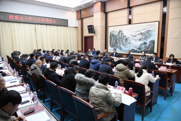 2024年12月31日下午,学校召开校重点工作调度会。会议听取11月调度事项办理进展,现场调度2项重点工作,书面调度8项重点工作,通报6项学校重要指标数据。校党委书记王琦主持会议并讲话,校领导、党委常委出席会议。