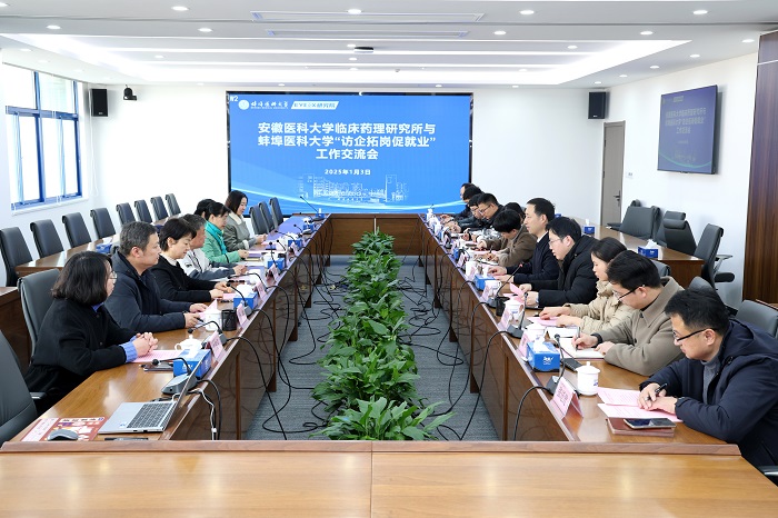 1月3日下午,临床药理研究所前往蚌埠医科大学就访企拓岗、招生宣传等工作开展交流。蚌埠医科大学党委常委、副校长刘浩出席座谈。
