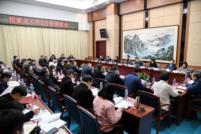 2月26日下午,校重点工作2月份调度会召开。会议听取1月调度事项办理进展,现场调度2项重点工作,书面调度8项重点工作,通报4项学校重要指标数据。校党委书记王琦主持会议并讲话,校领导、党委常委出席会议。