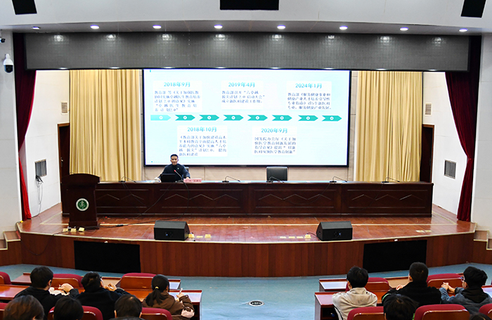 3月17日,校党委书记王琦在图书馆第一学术报告厅,为本科生讲授以“新医科·新未来”为主题的“形势与政策”课。