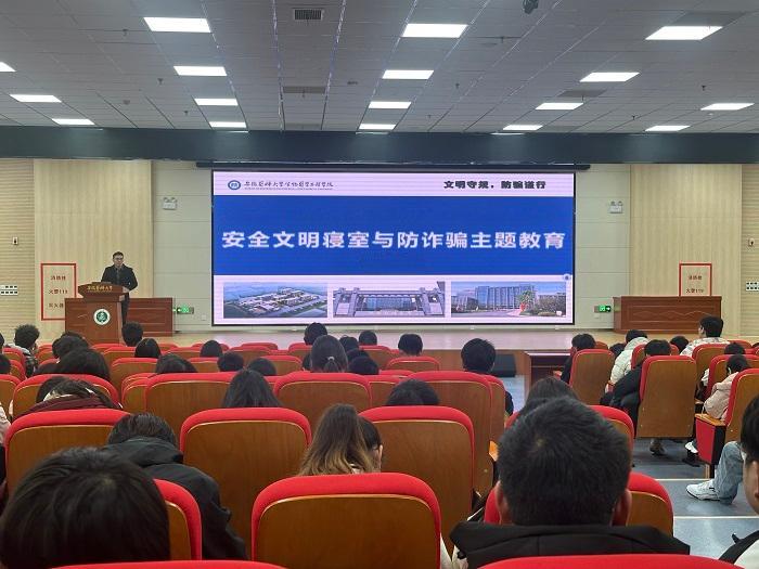 反诈讲座进课堂,捂紧学子“钱袋子”。“诈骗分子也在‘与时俱进’,利用高科技手段和人性弱点设计骗局,稍有不慎就可能落入陷阱。”院党委副书记周晓伟在防诈专题讲座中,结合大学生真实受骗案例,剖析AI换脸、虚假兼职等8类新型诈骗手段。通过情景模拟互动,带领学生拆解诈骗话术和套路,向学生们揭示诈骗手段的多样性和隐蔽性。他还通过互动提问的方式,引导学生思考如何识别和应对诈骗信息,并分享了不轻信、不透露、不转账的“三不原则”,提醒学生不仅要保护好自己的财产安全,也要提升家人尤其是老年人和儿童的防诈意识,做到“一人学反诈,全家都受益”。