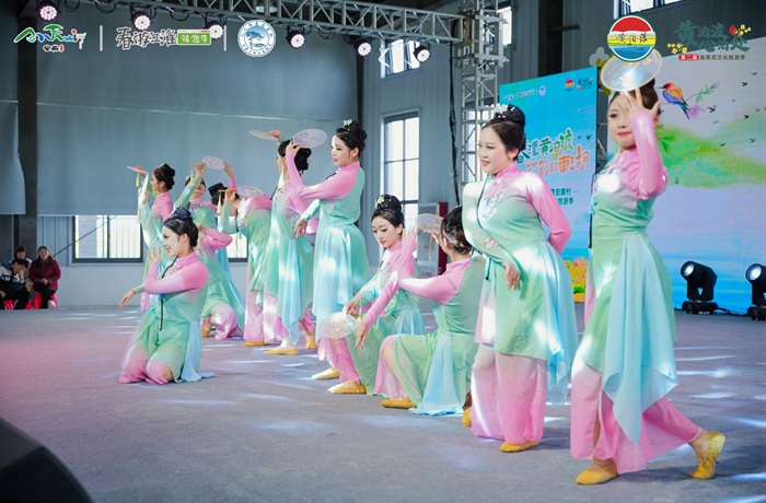 活动中,来自大学生艺术类社团的50余名同学给乡亲们献上了精心编排的“接地气”的精彩节目,获得现场阵阵掌声。大学生主持表演团深情朗诵《可爱的祖国》,抒发了青年学子对祖国的热爱;大学生仁心民乐团打击乐合奏《鸭子拌嘴》,以轻松欢快的节奏形式描绘了纯真质朴的美好乡村景象;黄梅戏爱好者协会以曲调婉转悠扬的戏曲联唱,让观众近距离感受到国家非遗艺术的独特魅力;大学生芳华舞蹈团带来的舞蹈《淡妆浓抹总相宜》以优美的舞姿,展现了江南姑娘的曼妙婀娜,给人以视觉美的享受;良医合唱团的歌曲联唱《鸿雁》《茉莉花》《凤阳花鼓》《好运来》,用动人的民歌旋律展现了祖国大好河山地域文化之美。户外金色的油菜花田间,拾音乐yo社乐队表演用充满青春活力的歌声,歌唱出春日的美好,赢得现场观众与游客的驻足围观。