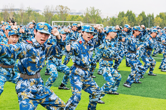 无军训、不成才,无迷彩、不青春。军训成果汇演中,2025级本科新生和承训单位的教官,以刚劲如松的军体拳、霸气凌厉的匕首操、气吞山河的刺刀操表演,充分展示了两周军训时间里磨炼意志、强健体魄的丰硕成果,更彰显了新时代青年顽强拼搏、昂扬向上的精神风貌。